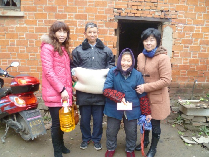 當(dāng)一行人來(lái)到丁家山管理處保安員,盛福銀家里時(shí),看到屋內(nèi)昏暗的燈光下,破舊的水壺?zé)鵁崴?,幾只水杯是為公司慰?wèn)的領(lǐng)導(dǎo)準(zhǔn)備的。盛福銀是我們公司的優(yōu)秀員工,工作認(rèn)真負(fù)責(zé),從不出差錯(cuò),是管理處主任的好幫手,他用微薄的工資供養(yǎng)著80多歲老母親。他表示對(duì)于金太陽(yáng)的這個(gè)大家庭給予他的溫暖,他無(wú)以為報(bào),唯有好好工作,為金太陽(yáng)盡自己的一份力量。