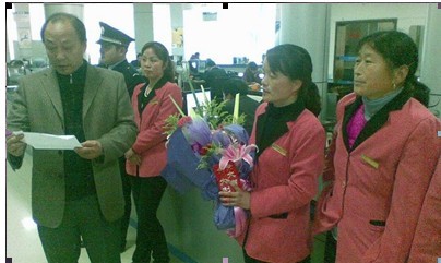 中心領(lǐng)導(dǎo)班子對黃永梅同志送榮譽(yù)、送掌聲、送鮮花、送紅包