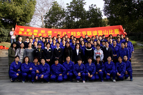 參加這次活動的有我們家美麗勤勞的保潔員、踏實(shí)能干的女保安和知性善良的管理人員。比賽中,保潔員們的勁頭最足,最早登上了山頂,這一張張燦爛的笑顏,展現(xiàn)了當(dāng)下金太陽女職工的美麗風(fēng)貌。
