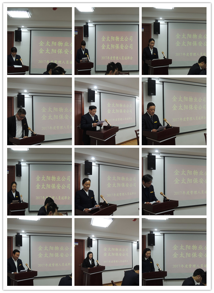 “金太陽” 管理人員述職大會,到場的30位管理人員先后述職。各述職人分別陳述了自己任職情況,履行崗位職責,完成工作任務的成績、缺點問題、設想等。