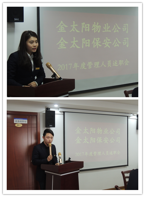2018年2月10日8︰00,在公司會議室,馬鞍山市金太陽物業(yè)管理(保安服務)有限公司舉行管理人員述職大會,會議由“金太陽” 兩公司總經(jīng)理袁夢雪女士主持,董事長朱曉梅女士出席述職大會。
