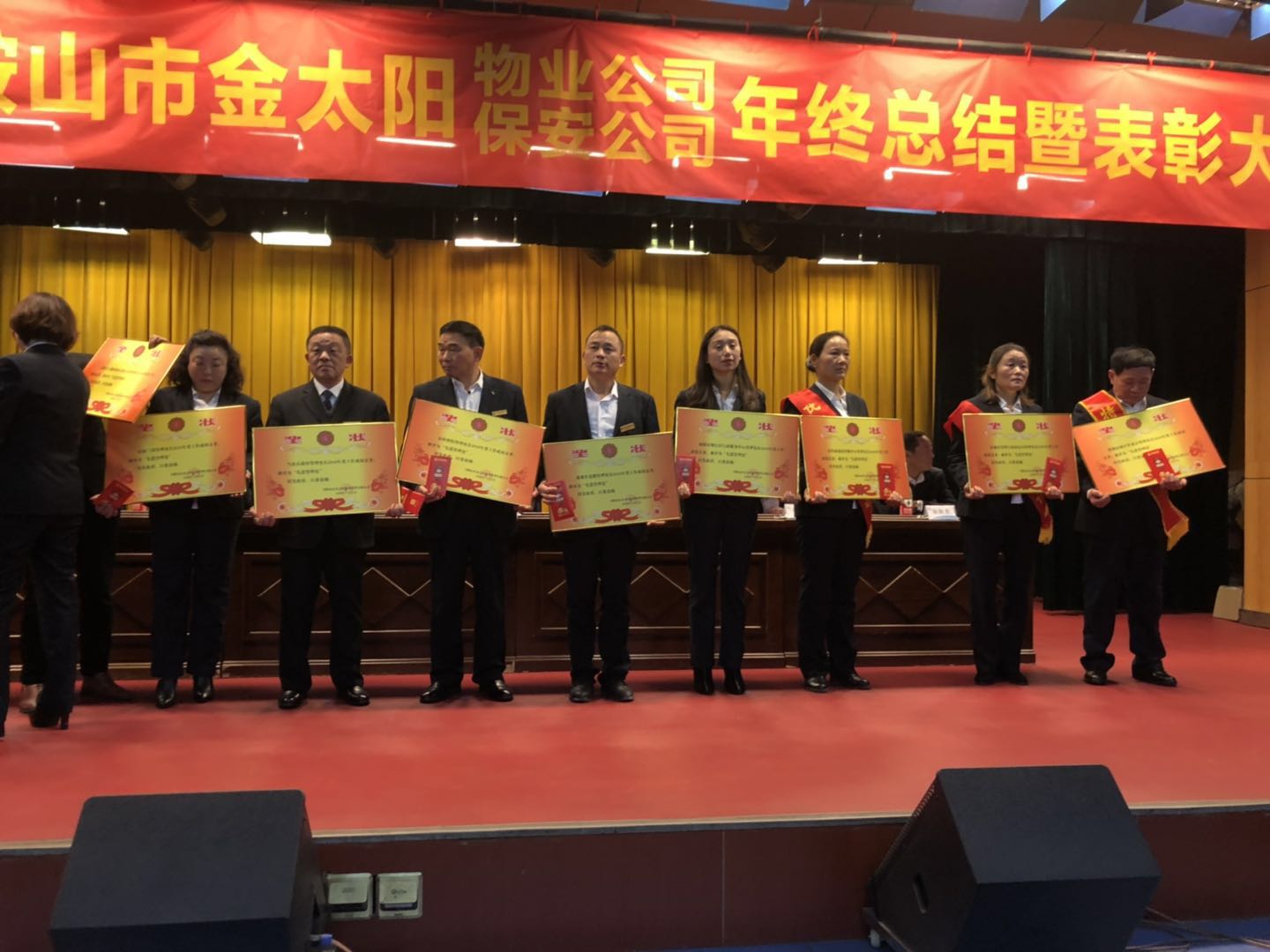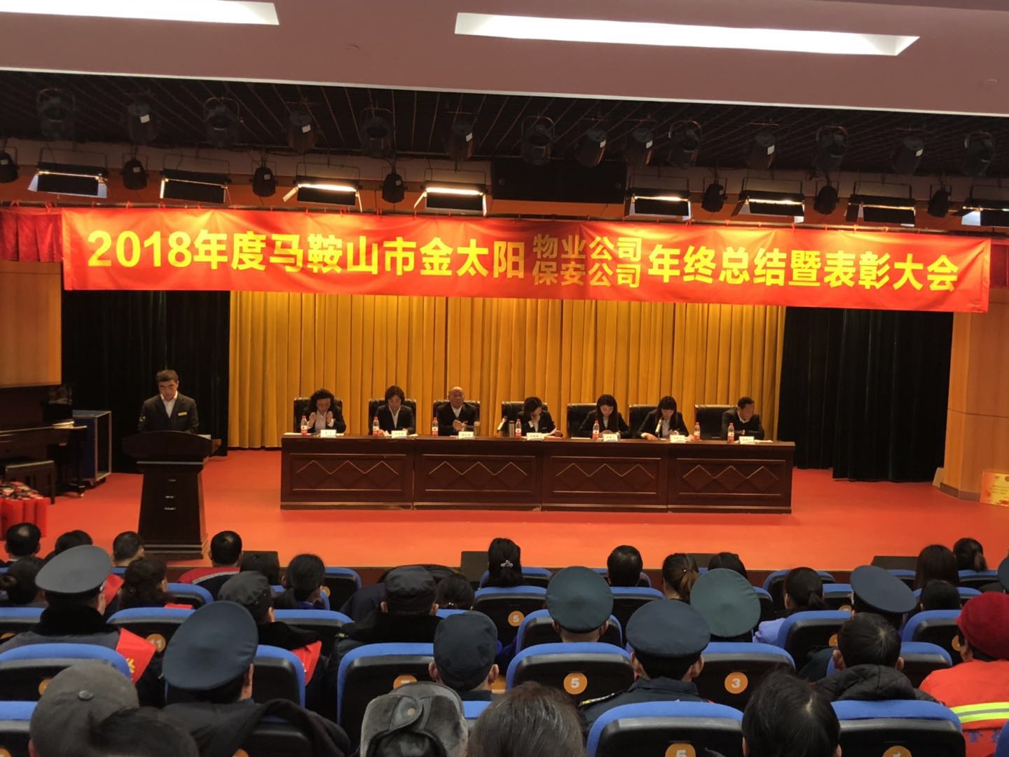 時(shí)光荏苒,歲月更迭。轉(zhuǎn)眼間忙碌的一年已經(jīng)過去,伴隨著激情與挑戰(zhàn),新的一年即將到來(lái)。值此辭舊迎新之際,馬鞍山市金太陽(yáng)物業(yè)管理(保安服務(wù))有限公司“2018年度金太陽(yáng)物業(yè)管理(保安服務(wù))有限公司年終總結(jié)暨表彰大會(huì)”于2019年1月19日下午13:00準(zhǔn)時(shí)在市新三館隆重召開?,F(xiàn)場(chǎng)一百多位員工在此刻歡聚一堂,共話今夕,“金太陽(yáng)”兩公司董事長(zhǎng)朱曉梅女士、總經(jīng)理袁夢(mèng)雪女士、執(zhí)行經(jīng)理朱曉軍女士、當(dāng)涂縣分公司總經(jīng)理盛傳樹、鄭蒲港新區(qū)分公司負(fù)責(zé)人、銅陵市分公司負(fù)責(zé)人、各管理處負(fù)責(zé)人等出席盛會(huì)。