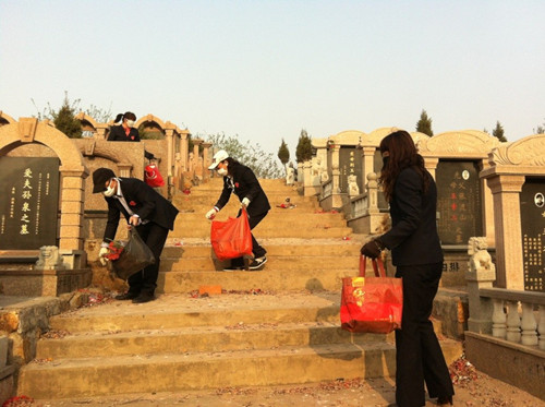 清明將至,祭祀的人越來越多,為確保陵園的衛(wèi)生環(huán)境情況良好,于今早6點左右,公司領導及全部管理人員共計30幾名一行來到丁家山陵園帶領著保潔員打掃起…